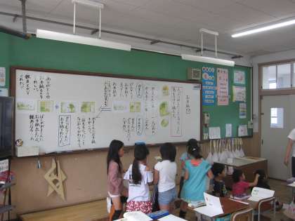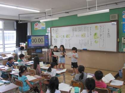 物語から読み取ったことをもとに,登場人物の気持ちを声に表して,音読をしています。グループで役割読みをして,お互いに発表しました。