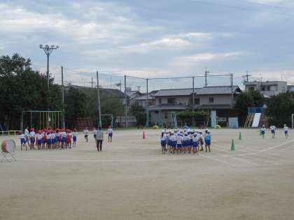 団体競技の練習をしました。より早く受け渡していくための工夫をしながら活動しました。