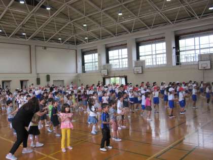 教えてもらっている低学年の子どもたちは,元気いっぱいに体を動かし,とっても大きな動作をして,可愛らしい姿を見せていました。