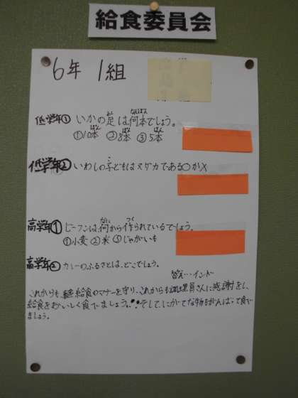 今月は、6−1が作ったポスターです。クイズ形式にしています。
