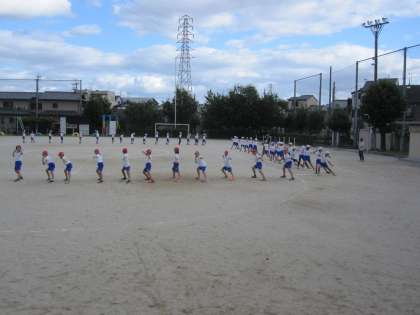 運動場では,腕の先,顔の向きなどをしっかりと意識して練習に励んでいました。一生懸命さがとてもよく伝わってきました。