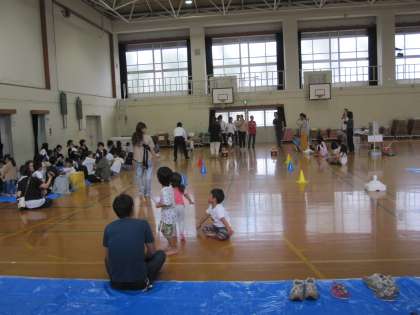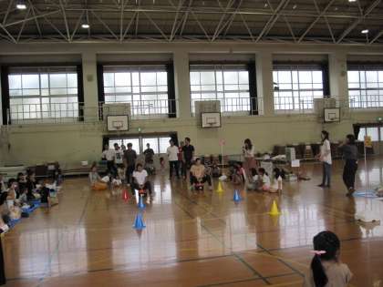 梅津北児童館による乳幼児運動会が,本校の体育館で行われました。親子のふれあいがいっぱいの運動会でした。