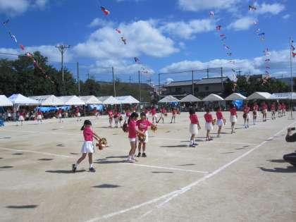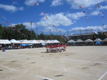 昼休みの時間には,本校のチアリーディングの発表を行いました。