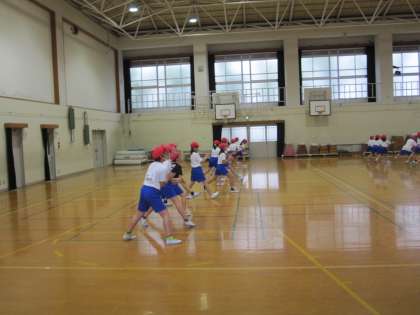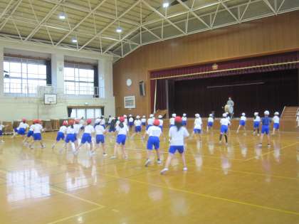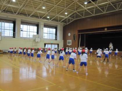 雨が降っていたため,体育館で演技の確認をしました。しっかりと手をのばしたり,足を上げたりして頑張っていました。