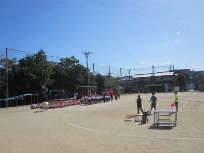 退場の練習をし,各組に分かれて,座席に戻りました。その後,綱引きの練習をしました。