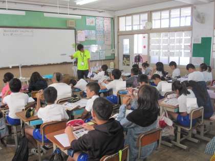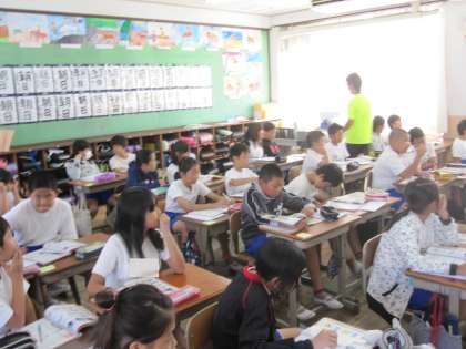 外国語活動を行いました。英語表現のできる・できないを聞き取ったり,話したりして活動しました。"can"と"can't"の違いをよく聞き取って,表現に慣れ親しみました。