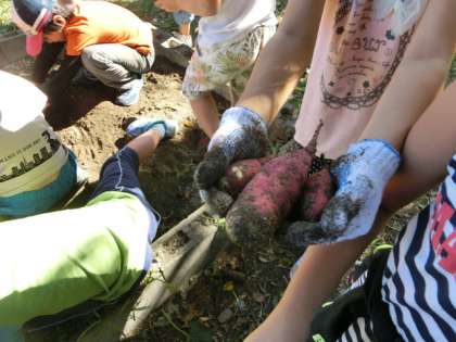 たくさん穫れたさつまいもは,後日焼き芋パーティーをして,楽しみます。