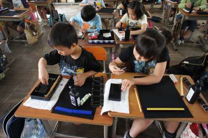 筆の持ち方や墨のすり方にはとても苦労していましたが