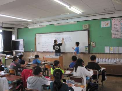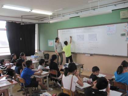 3つの教室に分かれ,それぞれ子どもたちは自分の考えを発表していました。
