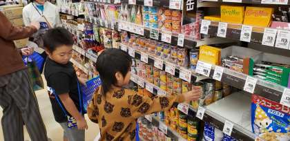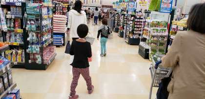 お誕生日会にむけて,調理するものを朝から近くのスーパーへ買い物にいきました。スーパーでは,必要なものを探して買うことができました。