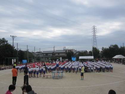 運動会の開会式を行いました。しっかりと入場行進をし,児童代表の開会宣言とともに運動会を開始しました。