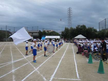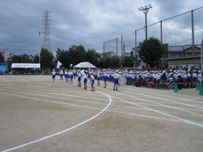 午後の部が始まりました。まずは「応援合戦」から始まり,その後,2・4・6年による「色対抗綱引き」が行われました。