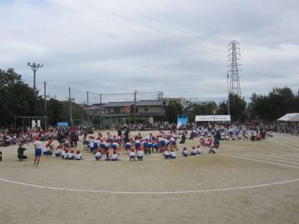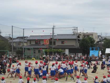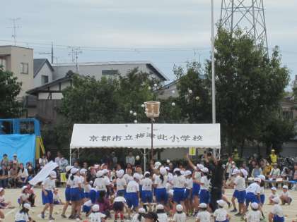 1・2・3年生の玉入れの後は,4・5・6年で行いました。よくねらって投げ入れる子どもたちもいて,上手に玉を入れていました。