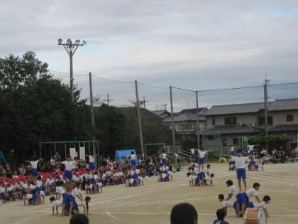 大技では,それぞれ子どもたちがかけ声を出して,息を合わせながら技を完成させることができました。