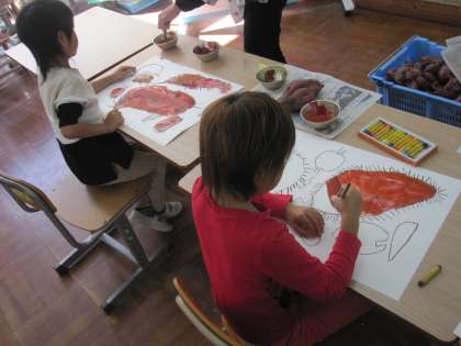 3組 図画工作科「さつまいもの絵」