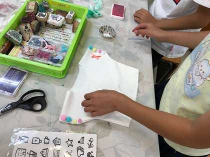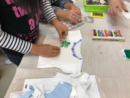 自分たちでTシャツ作りをしています。デザインをよく考えて製作しています。