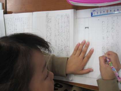 物語を読んで,一番心に残ったことを感想文にして書いていきました。「はじめ」「なか」「おわり」に分けて,原稿用紙に書いています。
