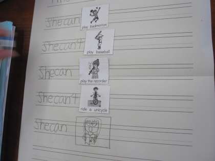カードにないものは自分で絵を描いて文を作っている子どももいました。