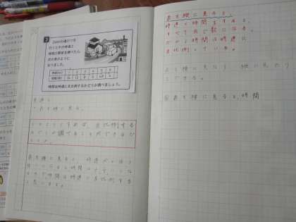 表やグラフから反比例の特徴について考えました。今日分かったことを自分でまとめていました。