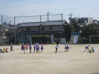 ポートボールの学習をしています。作戦をよく考えて活動しています。