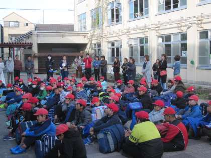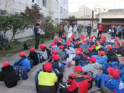 晴天の中,出発式が行われました。出発式での子どもたちは,これからの活動を楽しみにしている様子でした。