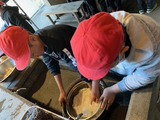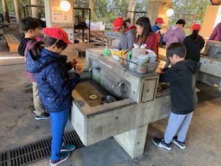とぐ,切る。その後炊く。手の空いた人で,食器洗いや片付けをして,それぞれ分担,協力ができています。