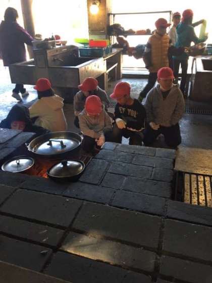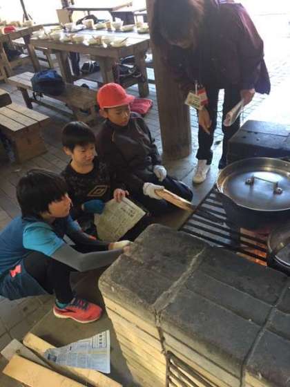 火の調整をしながら,目を離さず,薪をくべています。