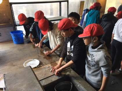 魚さばきに真剣な表情です!魚のぬめりがあり,難しいようです。