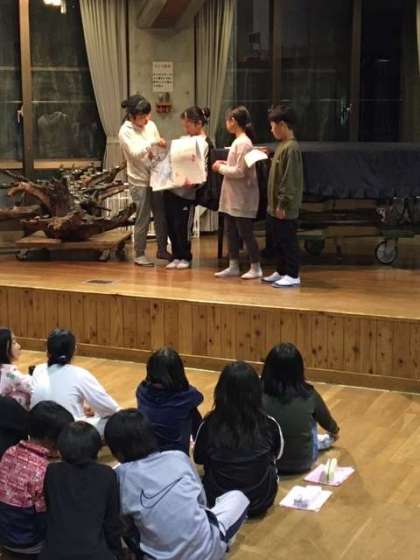 紙芝居をしています。班ごとの出し物が続いて行われました。