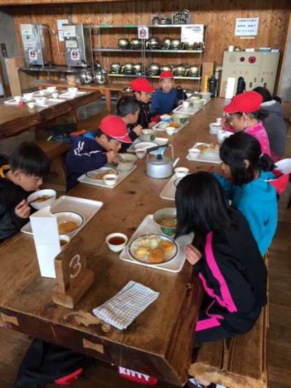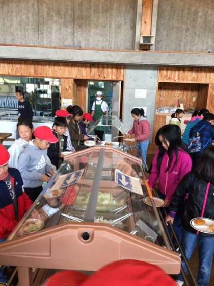 山の家最後の食事となりました。バイキング形式の食事を楽しんでいます。