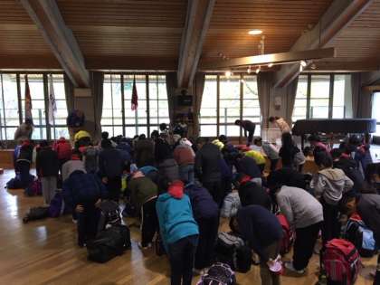 退所式を行いました。お世話になった山の家の方々にお礼を伝えました。この後,バスに乗って学校へ向かいます。
