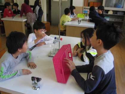 水を温めたり,冷やしたりすると体積がどのように変化するのかを実験しました。変化の様子をしっかりと観察していました。