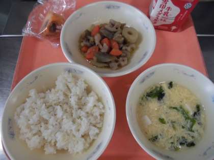子どもたちから、「『かきたま汁』は、卵がフワフワで美味しかったです。『柿』も、美味しかったです。」と、感想をくれました。