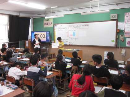 4年1組で校内研究授業を行いました。算数科「面積」の授業で,複合図形の問題について学習をしました。