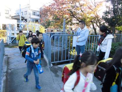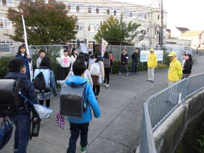 寒い中、見守り隊の皆さん、ありがとうございます。子どもたちもジャンバーや帽子、中には手袋もしています。風邪など気を付けて、元気に登校してほしいと思います。