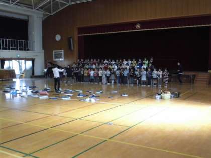 学習発表会に向けて,体育館で練習しました。リコーダーの音もそろってきました。