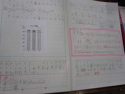 平均の求め方について,ノートに書き留め,学級で交流しながら理解を深めました。