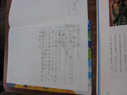柿山伏を聞いて,感じたことや聞いたことをノートに書き留めています。口調の面白さや,2人のやりとりなど,伝統文化としての独特な表現のおもしろさに気付いていました。