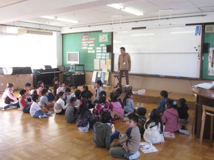 今日は音楽室で,楽器を使って学習をしました。