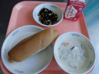 子どもたちから、「『きのこのクリームシチュー』は、クリームシチューの味がきのこにしみ込んでいて、美味しかったです。『ひじきのソテー』は、コーンが甘くて、ひじきとあっていて、とっても美味しかったです。」と、感想をくれました。