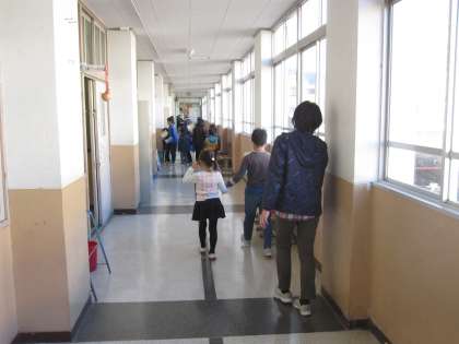 5年生のこどもたちが,来年度入学の児童をやさしくリードして案内をしていました。