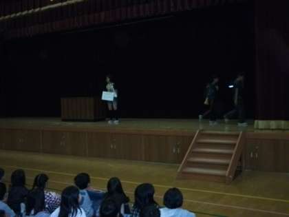 児童会主催の人権集会がありました。最初に子どもたちが普段の登校の様子を劇にして発表してくれました。元気よくお互いにあいさつできれば気持がよいとの感想でした。
