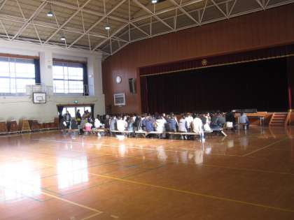 少し寒い日でしたが,体育館では地域の交通安全推進会会長より来年度入学児童のお家の方にお話をしていただきました。
