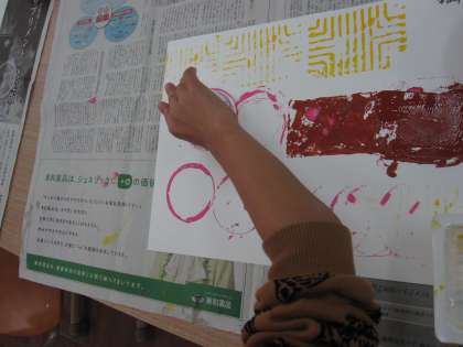 スタンピングの材料に絵の具をしっかりとつけて,スタンプをすることができました。