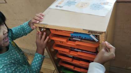 三角定規を使って,子どもたちは身の回りの直角を調べました。