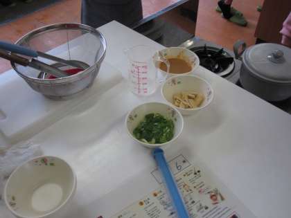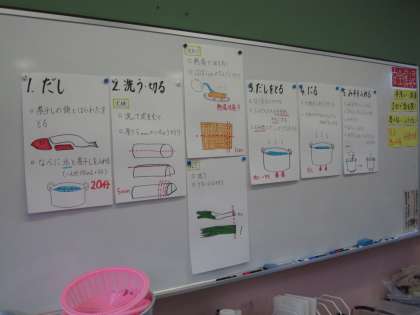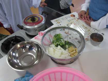 材料を切って,順序を確認しながら調理を進めました。