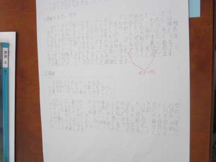 考えを深めた提案文を下書きしています。下書きをもう一度読み直して,よりわかりやすい文章になるように修正しています。