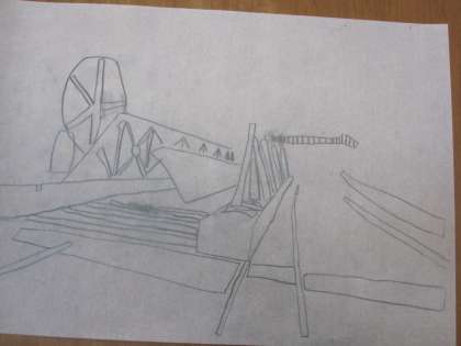 版画の下絵を描きました。今年度校外学習に行ったときに見た水路閣を描いています。
