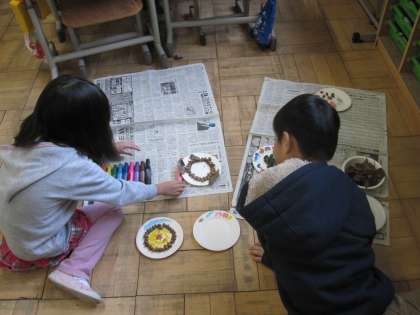 どんぐりゴマを作ったり,どんぐりの飾りを作ったりしました。