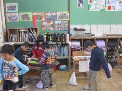 2年生で学習している「あそんでためしてくふうして」で,さらに工夫したおもちゃを1年生に楽しんでもらいました。